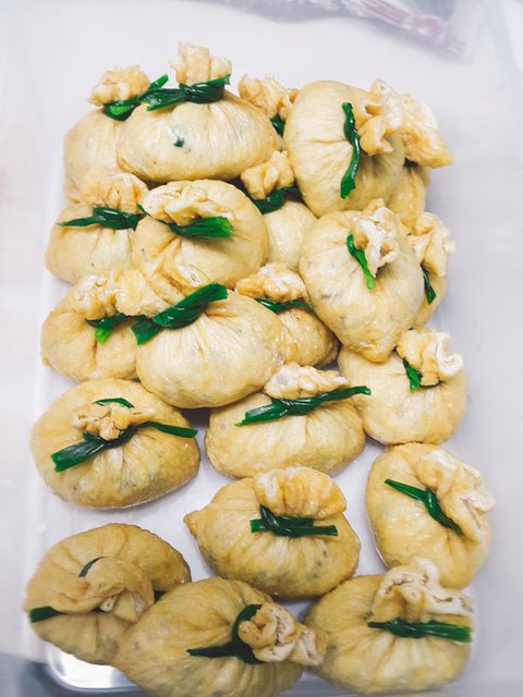 만두 대신 유부주머니 만두소랑 같이 두부 당면 쪽파 당근 넣어 만들어 보았어요