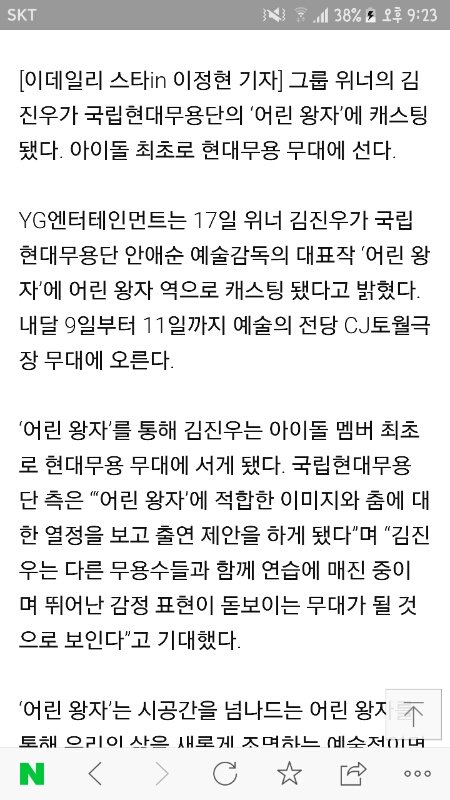 아이돌 최초로 국립현대무용단과 함께 '어린 왕자' 를 현대무용으로 연극 할 계획이라고 해요 ><