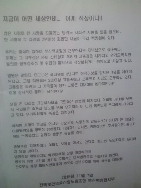 부산의 모병원은 더이상 이일에 대해 쉬쉬하고 넘어가면 안될것입니다
