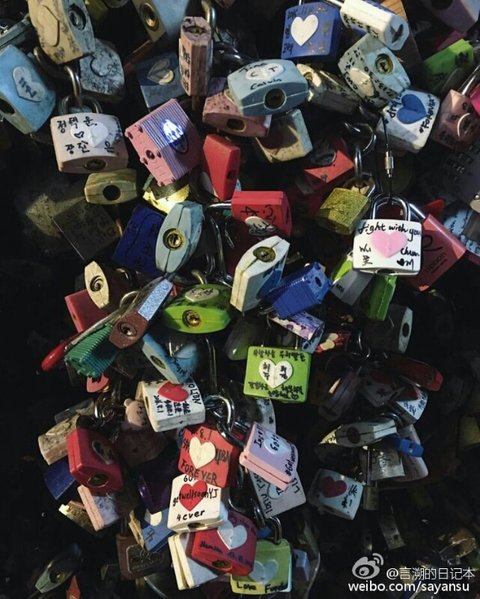 자물쇠에 영원한 사랑을 기원하는 걸