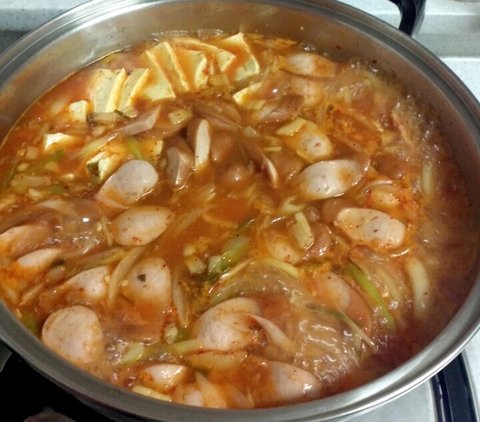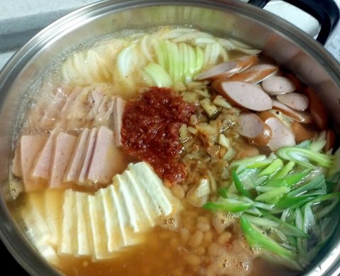 울엄니가 부대찌개 먹고싶다셔서 두부랑 콩만 사고 다른 재료는 집에 있는 걸로