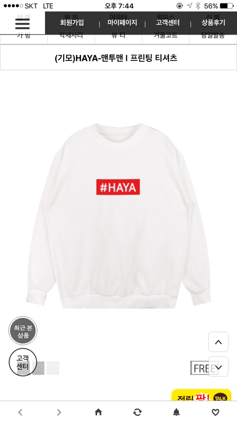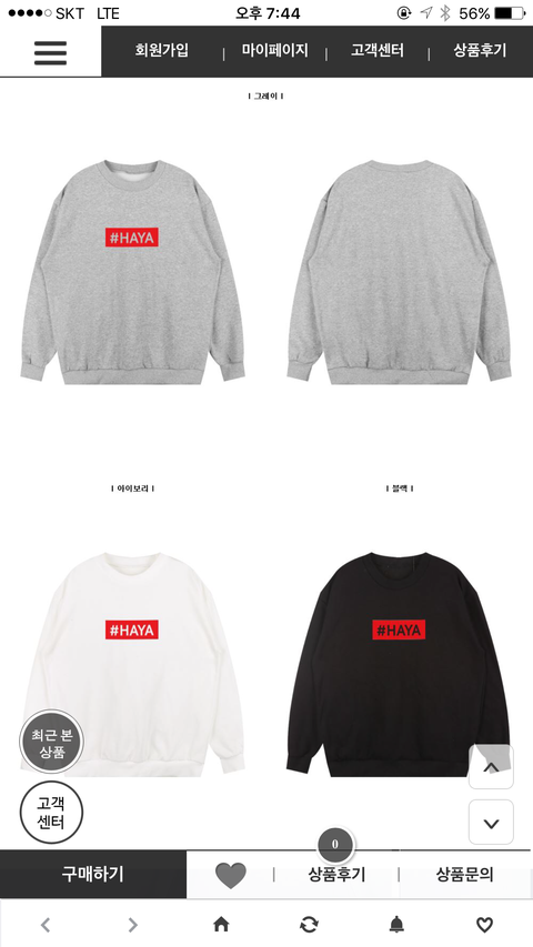 하야 맨투맨 나옴 ㅋㅋㅋㅋㅋ여기 왜이럼 ㅋㅋㅋ