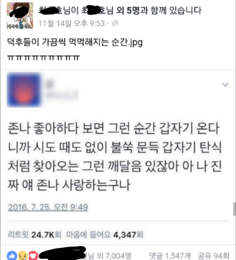 덕후들이 가끔씩느끼는 먹먹해지는거..