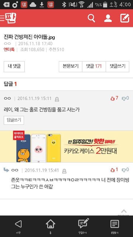 대댓쓴애 여기있냐? 장이씽 그는 누구인가 쓴 애 난데 ㅅㅂ .. 톡선댓글 보다 저 대댓글보이길래 ㅅㅂ...