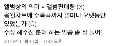 다들 그거 아냐 아티스트상하고 앨범상 기준같음ㅋㅋㅋㅋㅋ아티스트상을 엑소가 받았는데 앨범상은 왜 엑소가 아님? 이건 공정성의 문제다