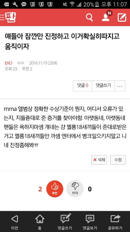 ㅅㅁ공기계. 감정적으로 글써봤자 득될거없어 최대한 논리적으로, 멜뮤 행태비판하는 글 쓰는게 좋을것같음 앨범상뿐아니라 다른상 논란도 있었다고 들었는데 자료에추가하면 더 객관적이어 보일듯.
