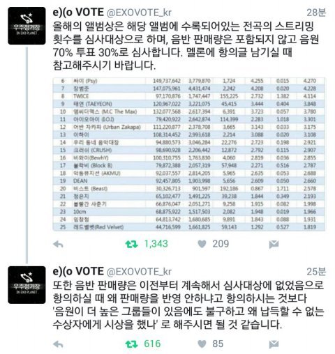 하지만 이상한점 아티스트 상을 받은 엑소가 앨범상을 못받았다? 말이 안됨. 위에서 말했지만 아티스트 상=앨범상 기준같음. 그럼 엑소가 받을 자격 충분히 있음 그리고 우리가 스트리밍 투표 모두 지는거 없었음
