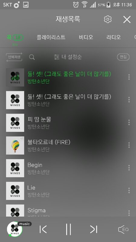 기본 스밍모곡에 둘셋 두번 앞에 넣았어