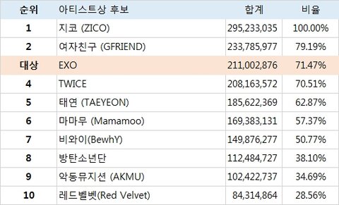 그리고 엑셀분들 투표 이겨서 받은거라고 하던데 빅뱅이랑 엑소 투표는 큰 차이 없었어요