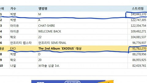 게다가 빅뱅은 8곡 엑소는 58곡이었는데ㅋㅋㅋ
