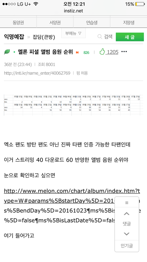 작년 멜론 대상 해명해봐 ㅋㅋㅋㅋㅋㅋ 빅뱅한테 다 쳐발린 엑소가 대상탄거 해명좀 해봐 ㅋㅋㅋㅋㅋㅋㅋㅋㅋㅋㅋ왜 빅뱅꺼 주워먹었어ㅠㅠ 대상 세개중에 제일 쩌리인 아티스트상 타서 열폭하는 엑퀴 넘 불쌍하닼ㅋㅋㅋㅋㅋ
