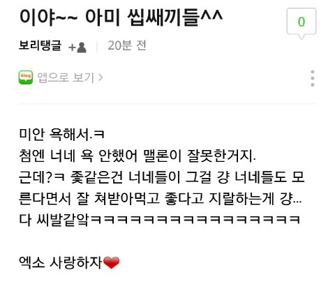 거기 올라온 사진 자료 중에 방탄 욕하는 글 있길래 가져왔어 너희 고발기간이라고 들었는데 블로ㄱ 같은 것도 자료 긁어갔는지는 잘 몰라서