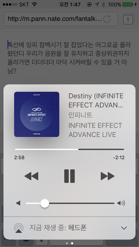 연말무대에 인피니트 노래하는데 차트에도 노래가 따악 버텨 선방하고 있음 얼마나 좋냐며 ㅎㅎ
