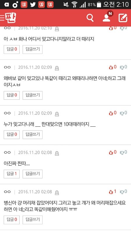 찐따같이 맞고다니냐하면서 때리라고..ㅅㅂㅋㅋㅋㅋㅋㅋ