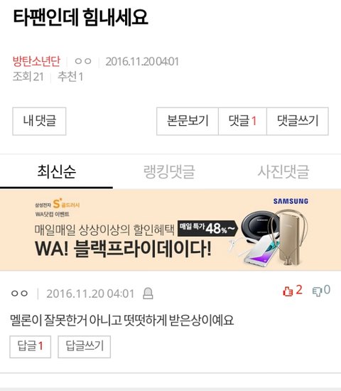 톡선보니까 두분다 멜론때문에 휘말린상황이시라길래 제가두분다 위로. . . . ?해드리려고 글올리고 글올리려고왔는데요! 댓글이달려서 가봤더니 톡선내용이랑다르더라구요 이번에누가잘못한거예요. . ? +저진짜타팬이예요ㅠㅠㅠ오해하지마세요 방1탄1소1년2단2팬아니예요ㅠㅜㅠ