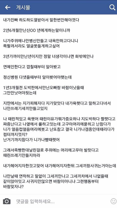 그때언니랑사귀던 남자친구분이 굉장히화가나셨는지 장문으로 글을올리게되었는데