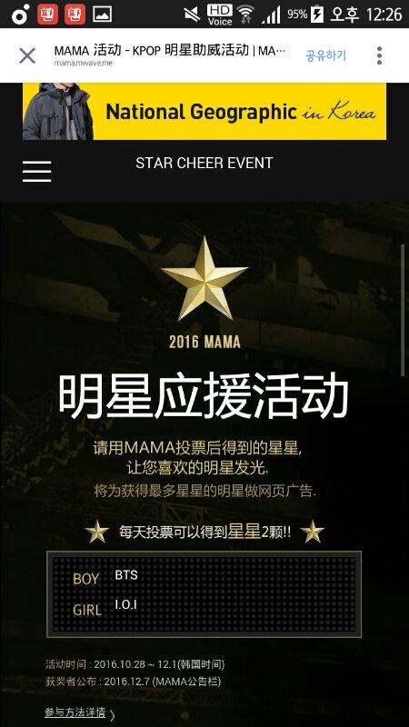 헐 우리 맘마 남자 응원 1위야?