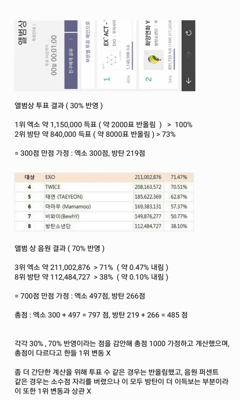 앨범상 퍼센트로 점수 계산해봄