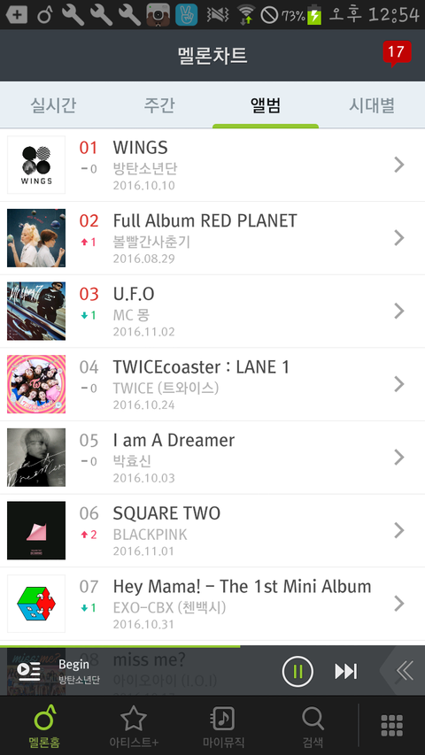 WINGS 앨범 발매한 주부터 지금까지 앨범순위 1위!!!
