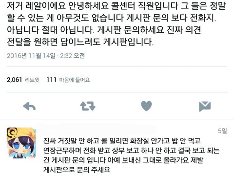 제목그대로임 콜센터직원이 할수있는게없데 조금 답느려도 우리 게시판 폭주시키자