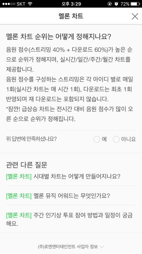 저번에 멜롱에 문의하려다가 본건데 이거 아님?? 애초에 멜롱차트 순위 자체를 이렇게 하는데 뜬금없이 시상식 음원 순위만 비율 따로 할 이유가 없잖아