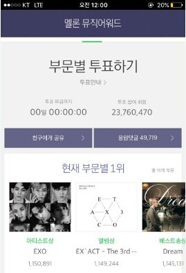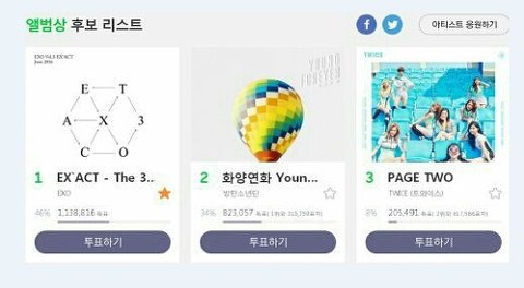 그렇다면 앨범상 시상 기준의 투표 30%도 엑소가 앞선다는 것을 알 수 있음.