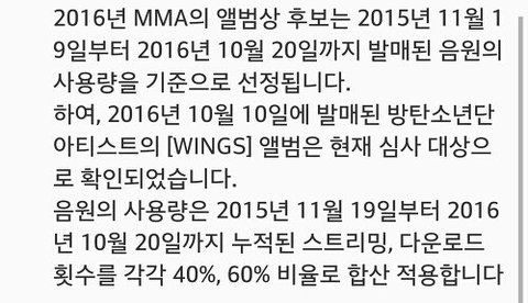 기간 내에 방탄소년단이 낸 'WINGS앨범'과 '화양연화 Young Forever' 앨범은 두개 다 각각의 후보로 앨범상 후보에 올라가게 되는 것임.