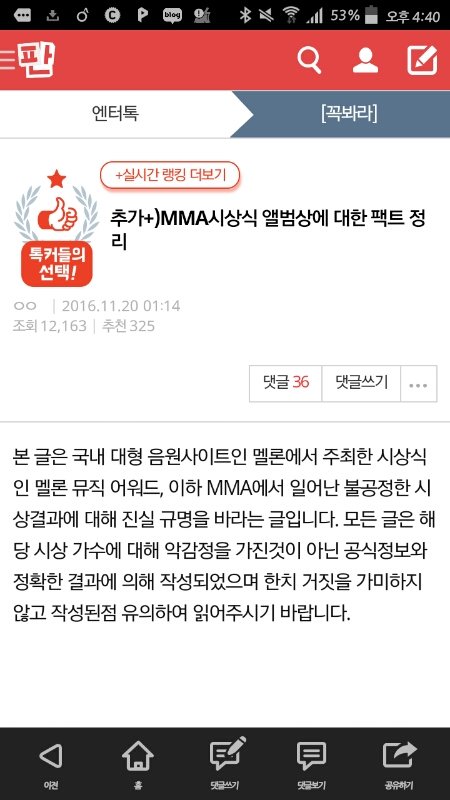 http://m.pann.nate.com/talk/pann/334487087&currMenu=search&page=1&q=mma 작년앨범상 올해아티스트상 반박거리 전부 정리돼있음ㄱㄱ