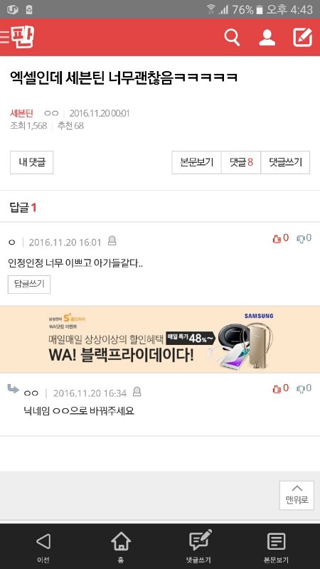 그 솔직히 타팬분이 우리팬톡 들낙거리면서