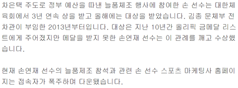 그만큼 타기 어려운 상이었던거임 근데 손연재는 매번 받음 저 체육회상을ㅇㅇ