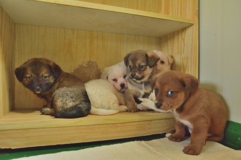 한 열악한 보호소에서 아기 강아지 다섯마리가