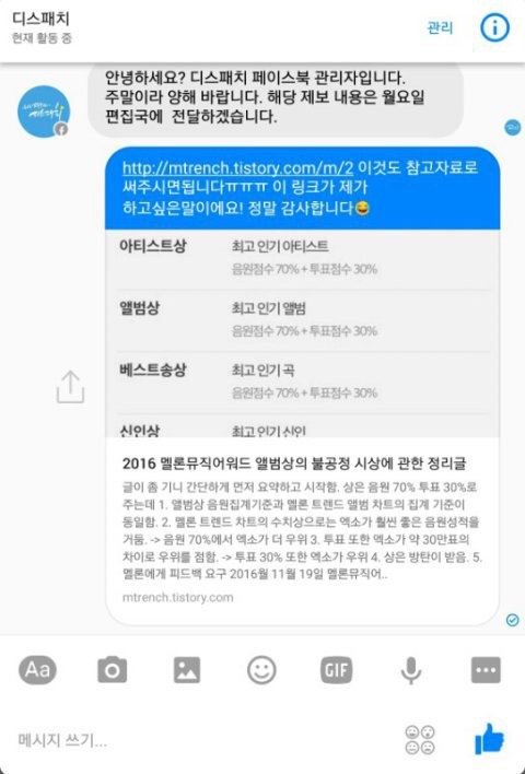 저 쪽 팬덤에서 디1스1패1치에 기사 올려달라고 연락했더라.....