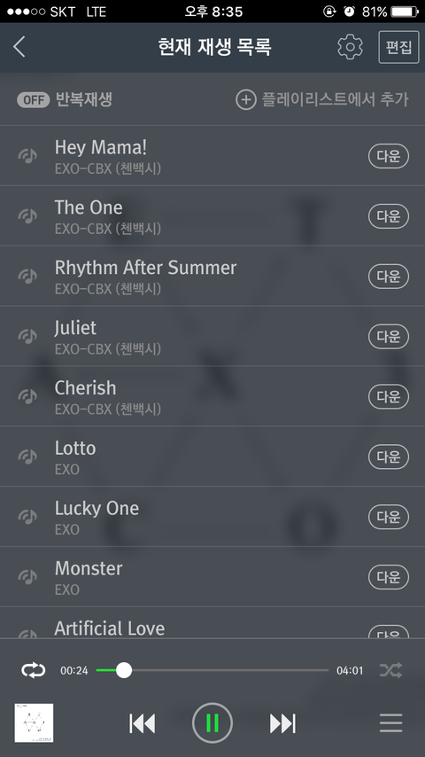 밑에는 쭉 이그잭트 수록곡인데 이렇게 돌리는거 맞음? 멜뮤 끝나서 달라졌다고 들은거같은데 서치해도 안나옴 ㅠㅠ