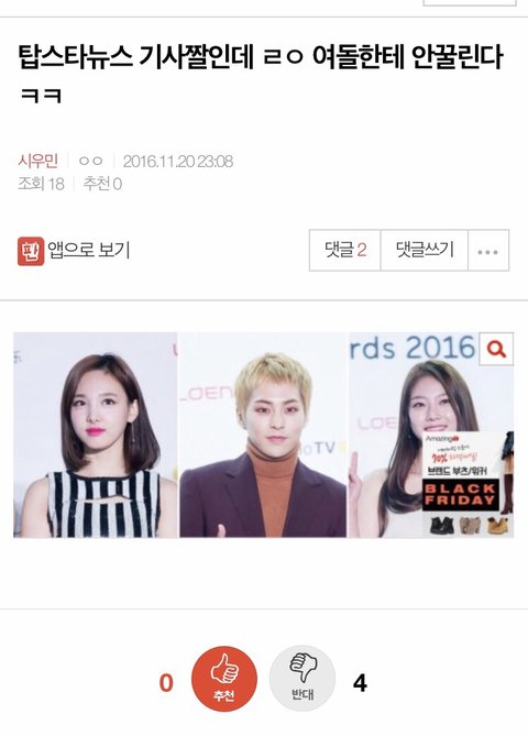 탑스타뉴스 기사짤인데 ㄹㅇ 여돌한테 안꿀린다 ㅋㅋ