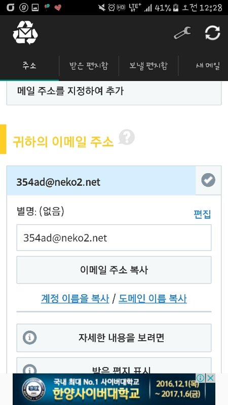 들어가면 이렇게 이메일 주소가 떠
