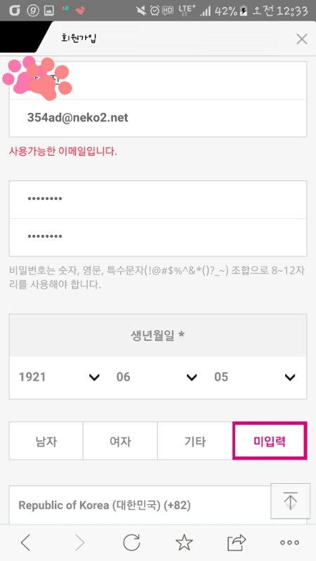 그리고 성별 ,핸드폰 번호 입력x