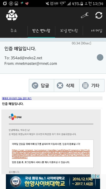 그리고 인증메일이 보내고 좀 30초정도 기다리다 보면