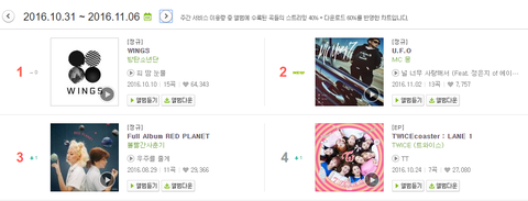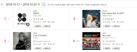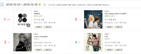 2016년 5주연속 1위는 엠씨더 맥스, 장범준, 쇼미에피소드4, 방탄 이렇게 있었어.