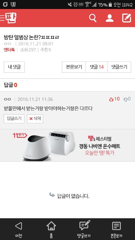 갓소팬들 추천수 오진다 내꺼 벌써 베플먹음 ㅋㅋㅋㅋ