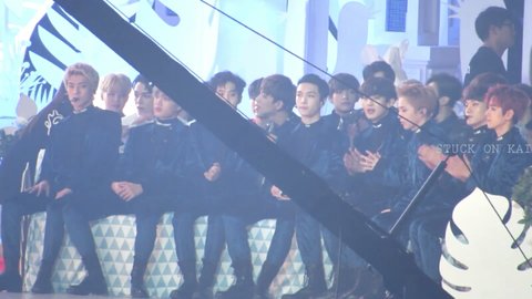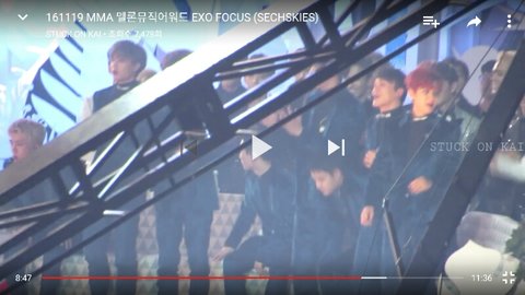 엑소는 맨앞줄 앉아 있었다 이때는 8분 14초