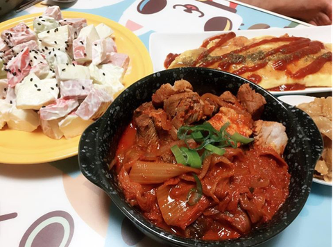 밥이라기보단 안주로 만들어본 김치찜,과일샐러드,오믈렛이에요! 오믈렛에 피자소스 뿌려먹으면 정말 맛있어요ㅎㅎ 과일샐러드는 저희 식탁위에 자주 등장하는 신랑이 좋아하는 메뉴에요. 김치찜은... 그냥 사랑입니다♥️