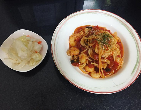 간단해서 자주해먹는 토마토파스타. 칵테일새우 듬뿍 넣어서 주말에 한끼 해결했네용ㅋㅋ