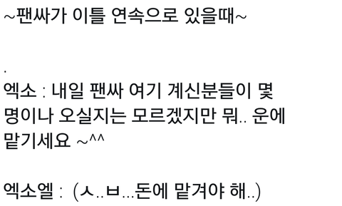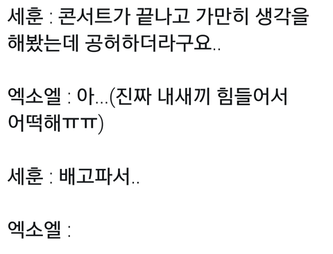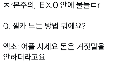 이쯤되니 엑소가 저렇게 조련해서 팬들도 드립이 찰진지 팬들의 드립이 찰져서 엑소가 저렇게 된건지 모르겠음