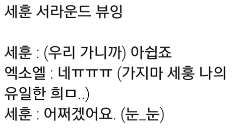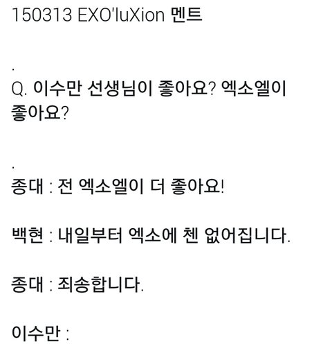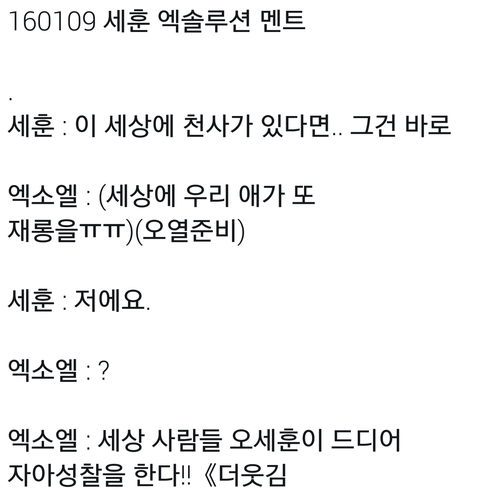 알아요라고 대답하는 엑소엘이나 저런 대답하는엑소나 개웃김 ㅋㅋㅋㅋㅋㅋㅋ