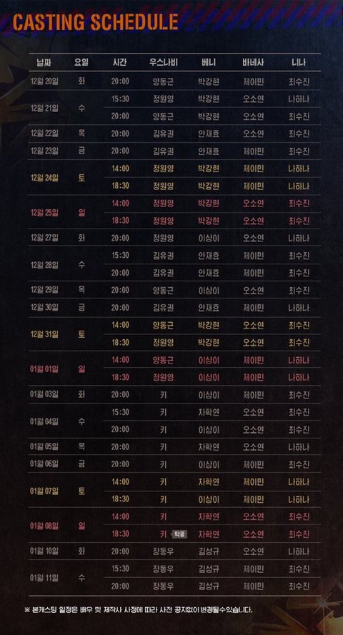 다들 봤겠지만 잉더하 캐슷힝 스케쥴...