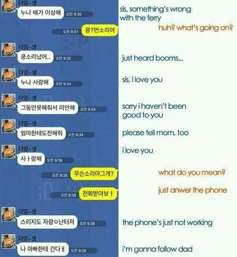 아직까지도 이런 글만보면 바로 눈물이 터져나옵니다. 저당시 죽어간 아이들은 다 내여동생 뻘이었고 실제로 저 배안엔 우연히 알게되어 친해진 동생이 타고있었습니다.언젠가 그 아이의 어두운면이 무엇때문인지 궁금해서 물어본적이있었어요. 그때 그 아이는 머뭇거리면서 말했어요.