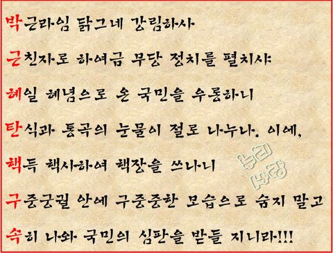 대한민국 국민 모두가 거리에 나와 하나된 목소리를 내길 바랄뿐이다.