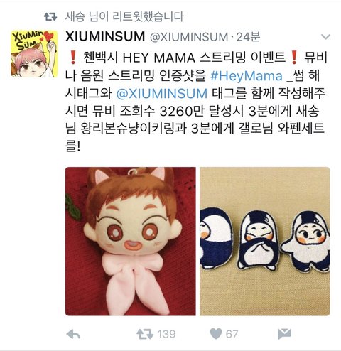 시우민썸님이 헤이마마 스트리밍 이벤트를 여셨어>.<