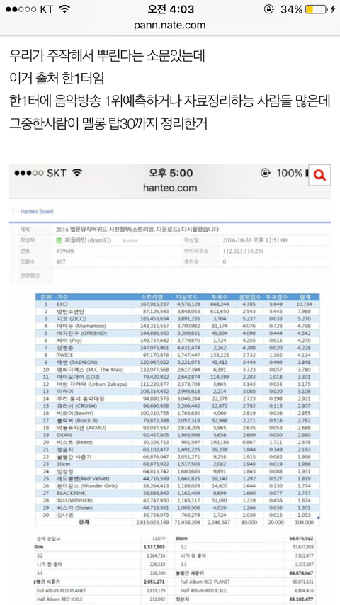 이거 왜 글 올린 사람이 멜론이라는데 어쩌다 개온차트가 된 거임?
