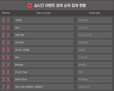 저는 개인적으로 4위에 올라와있는 빅뱅 ‘하루하루’를 많이 들었던 것 같아요 ㅎㅎ